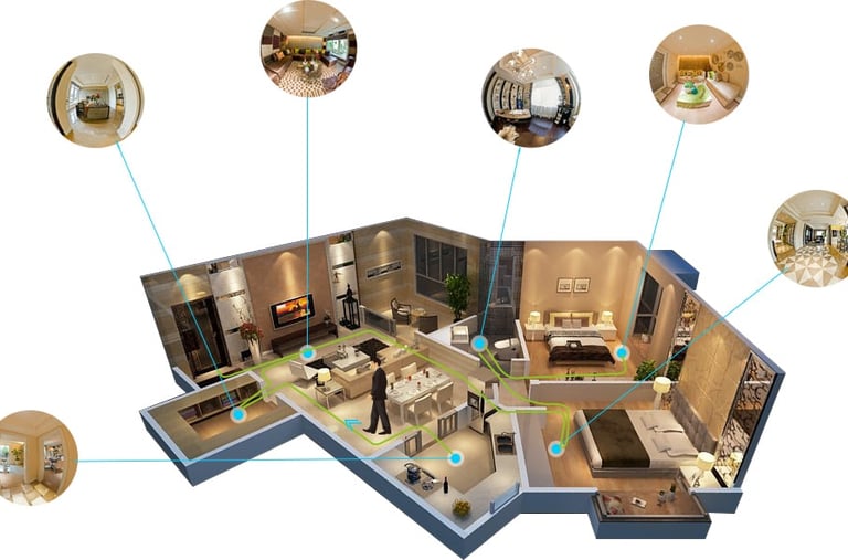 Proporcionamos imágenes panorámicas en 360 grados, captando cada detalle de espacios como casas, oficinas y empresas, ideal para proyectos de visualización inmobiliaria y diseño interior.